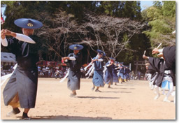 1914年以前、集落単位の島一周舟こぎ競争を声援するための郷土芸能。