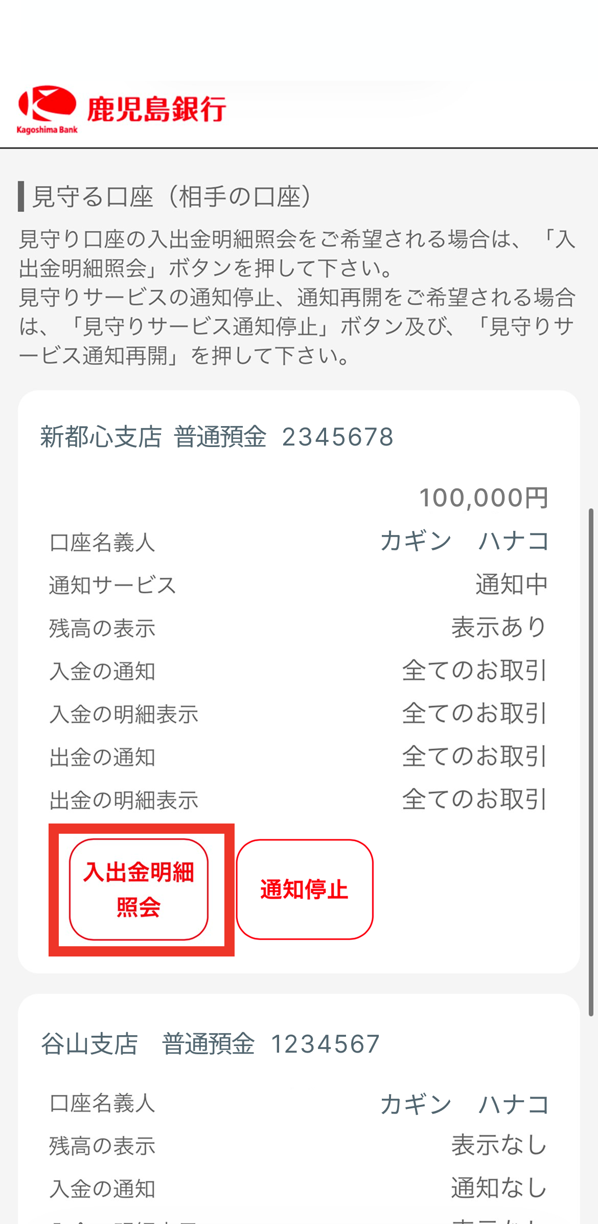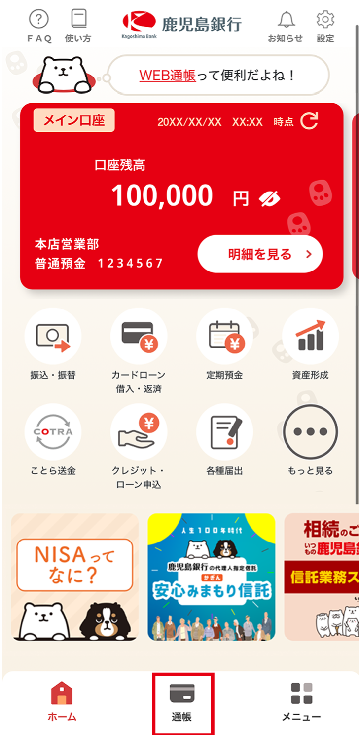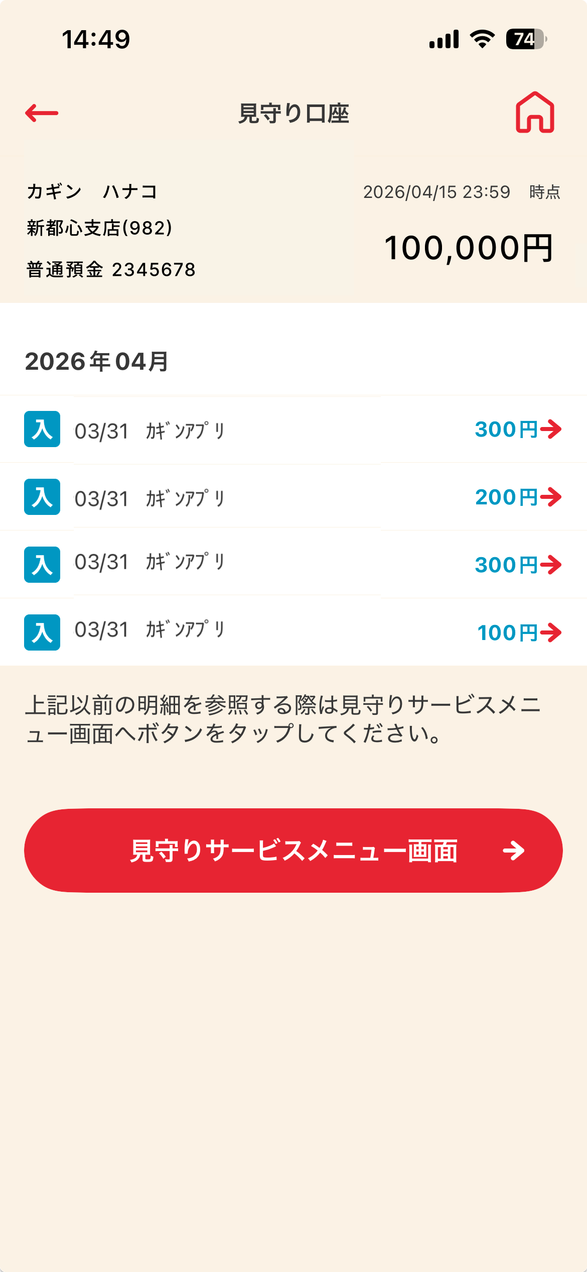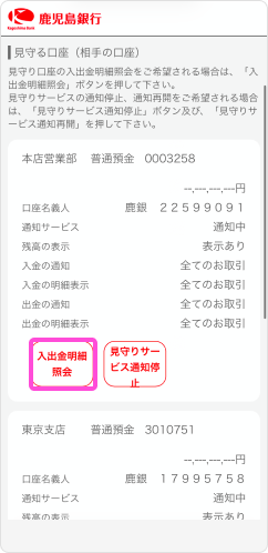残高や入出金の明細を見守もっていただくことができます。