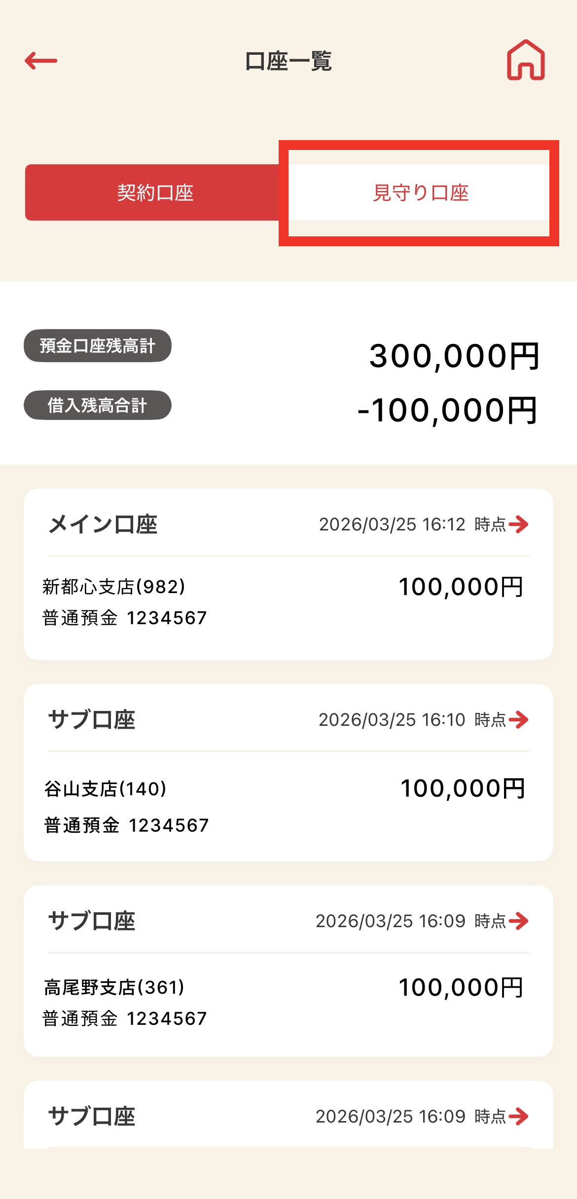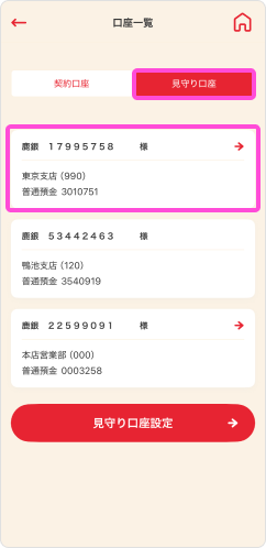 口座一覧画面に表示可能な見守り口座は、最大20口座です。