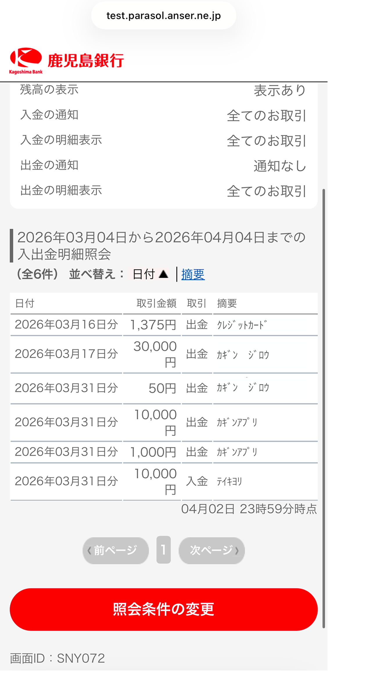 入出金 明細照会 |