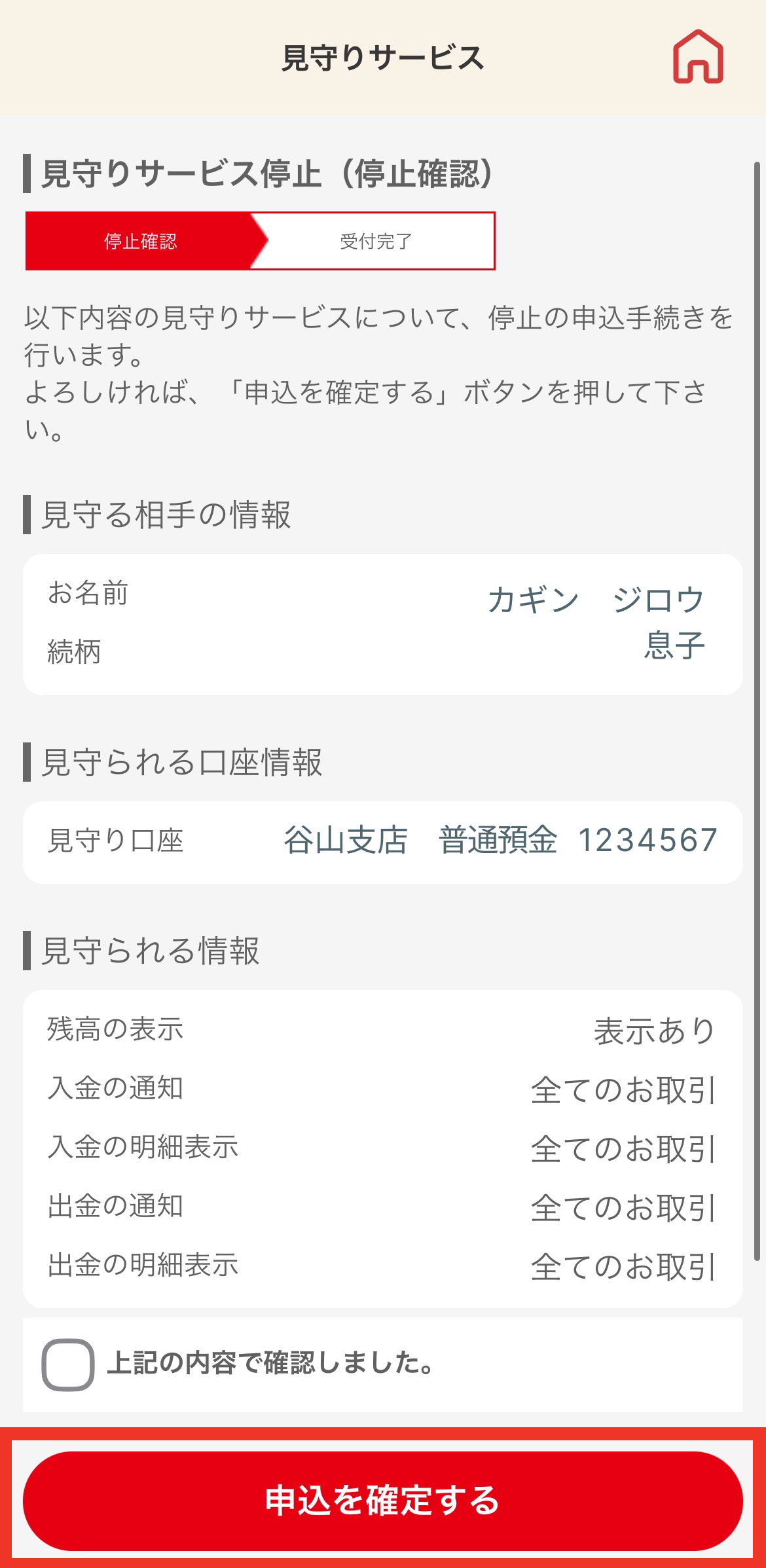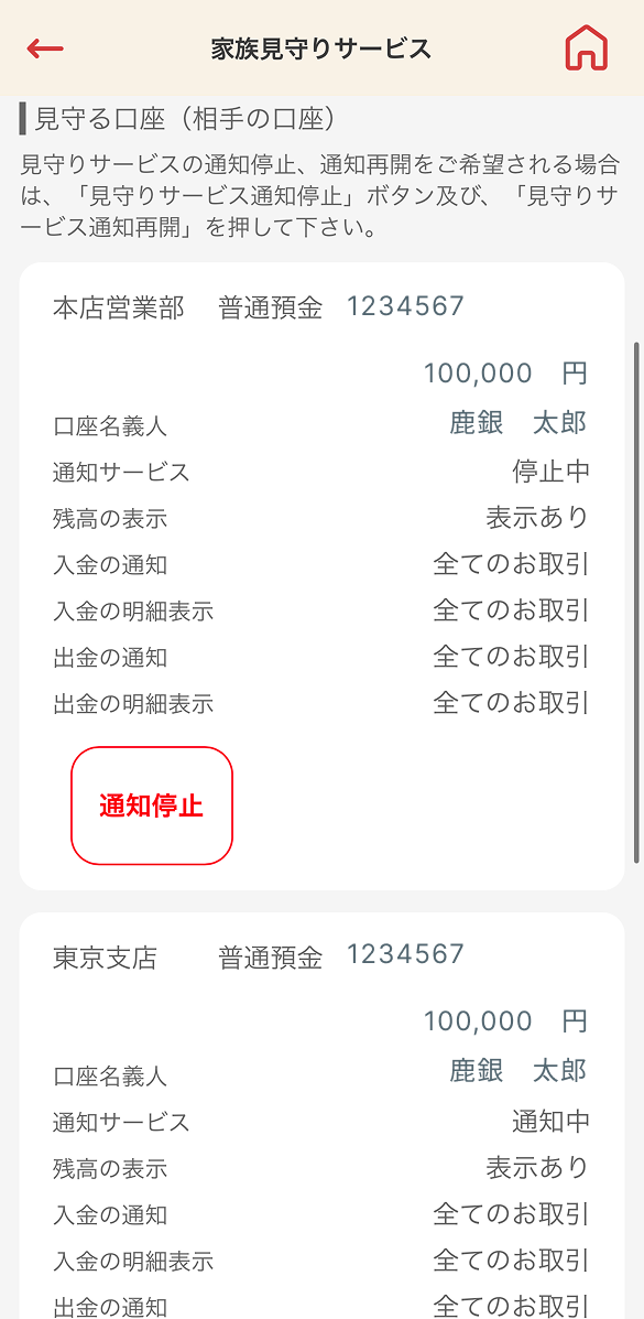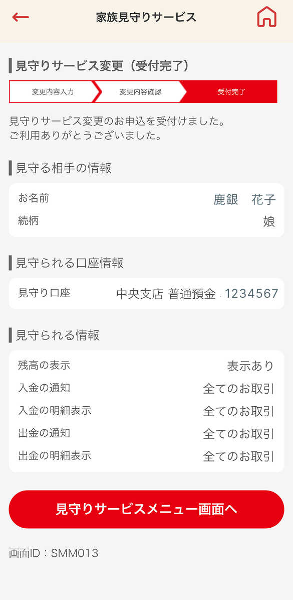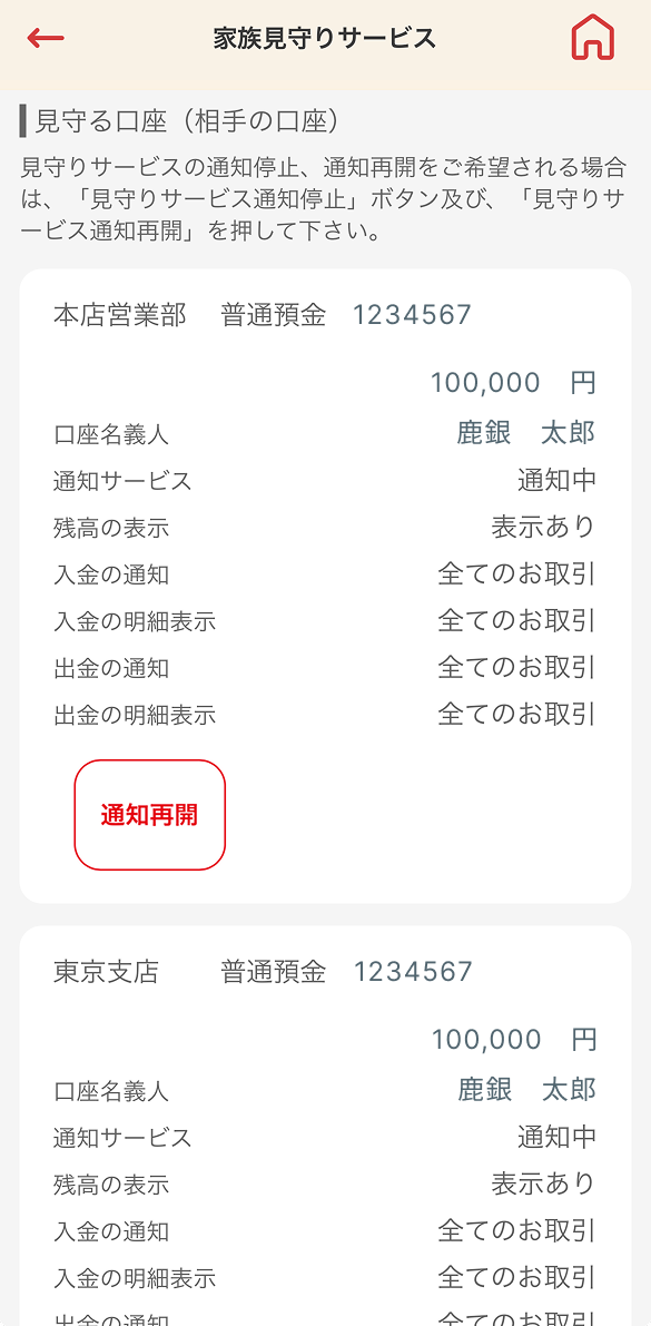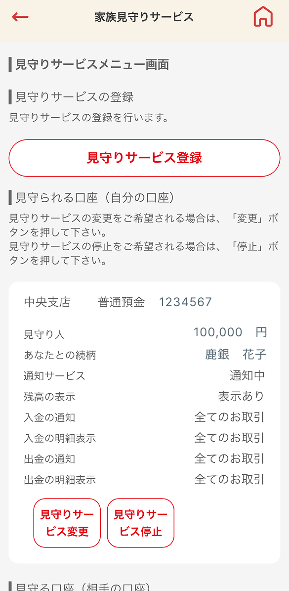 - 口座番号(見守る方・見守られる方)