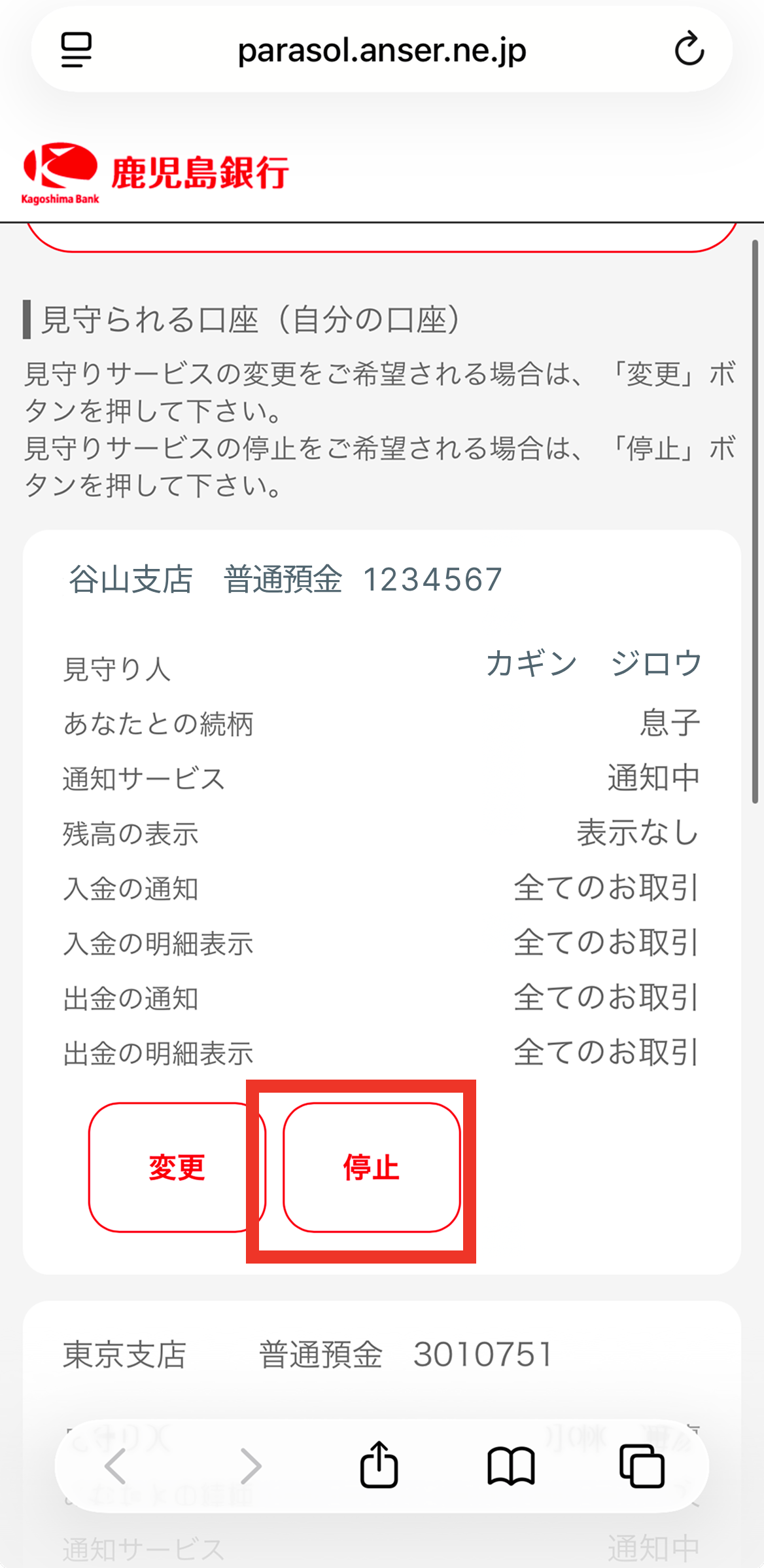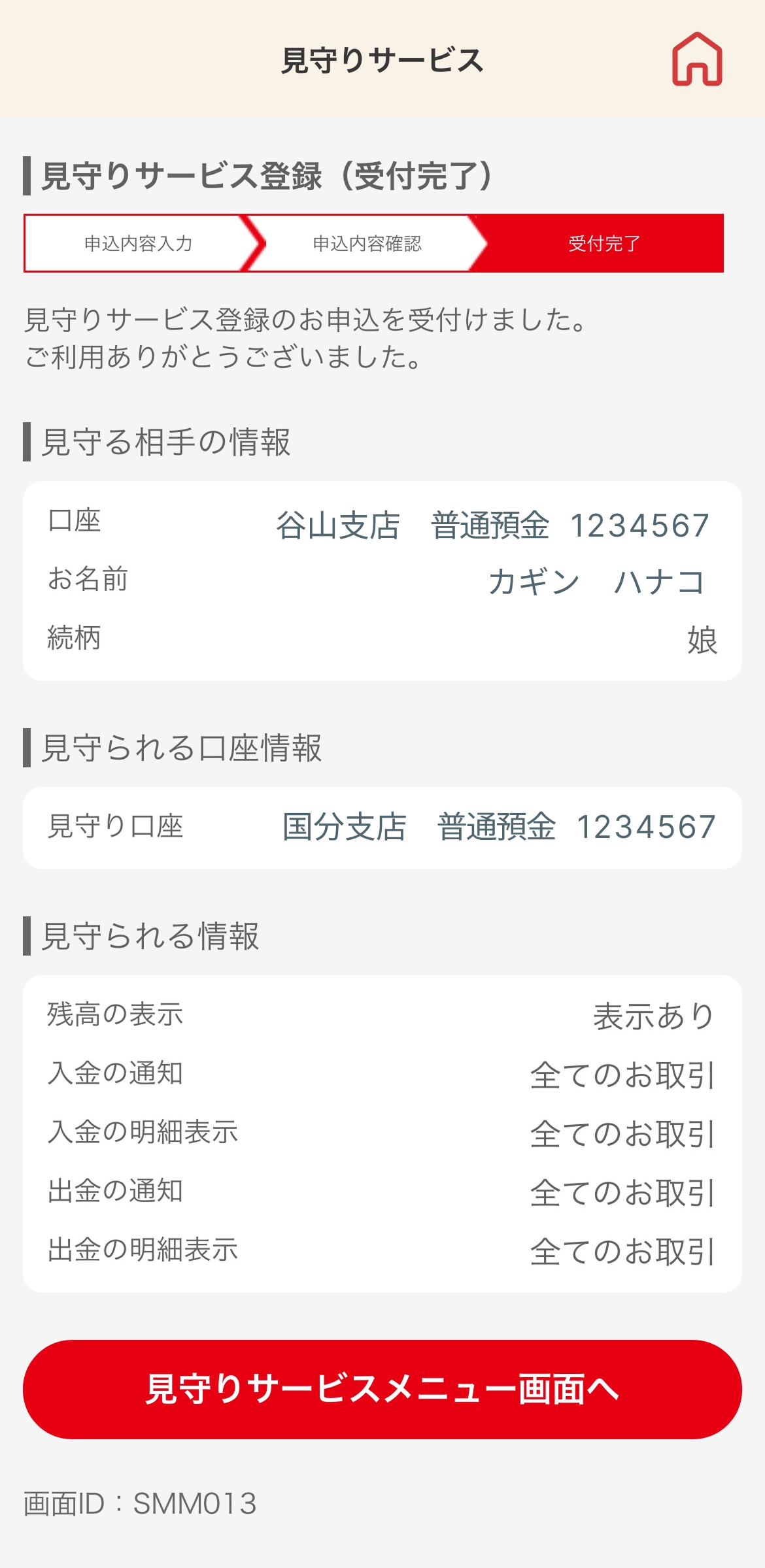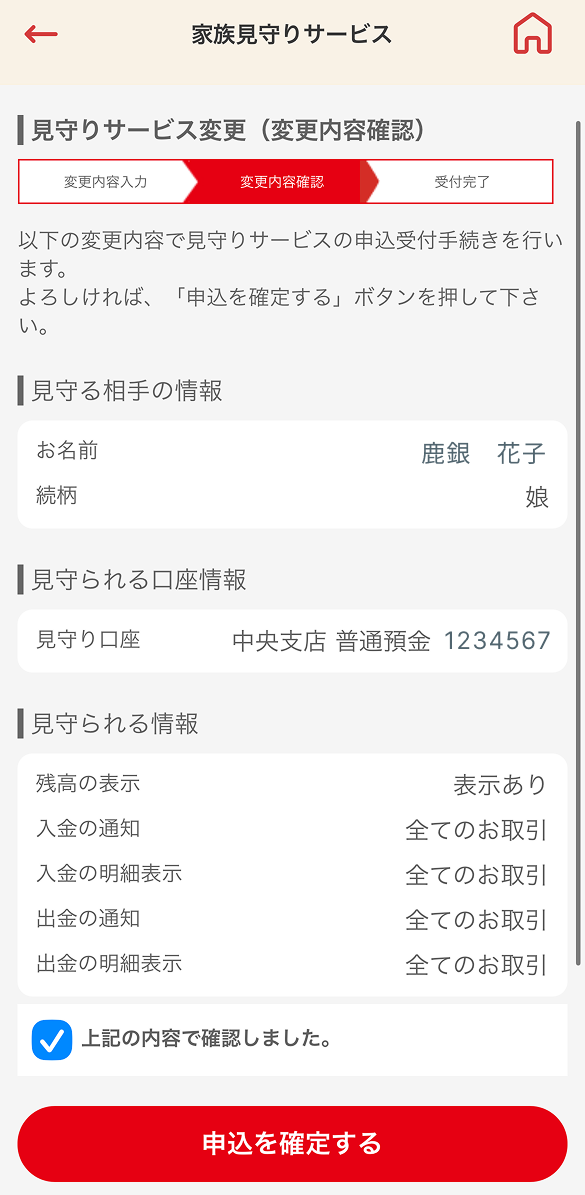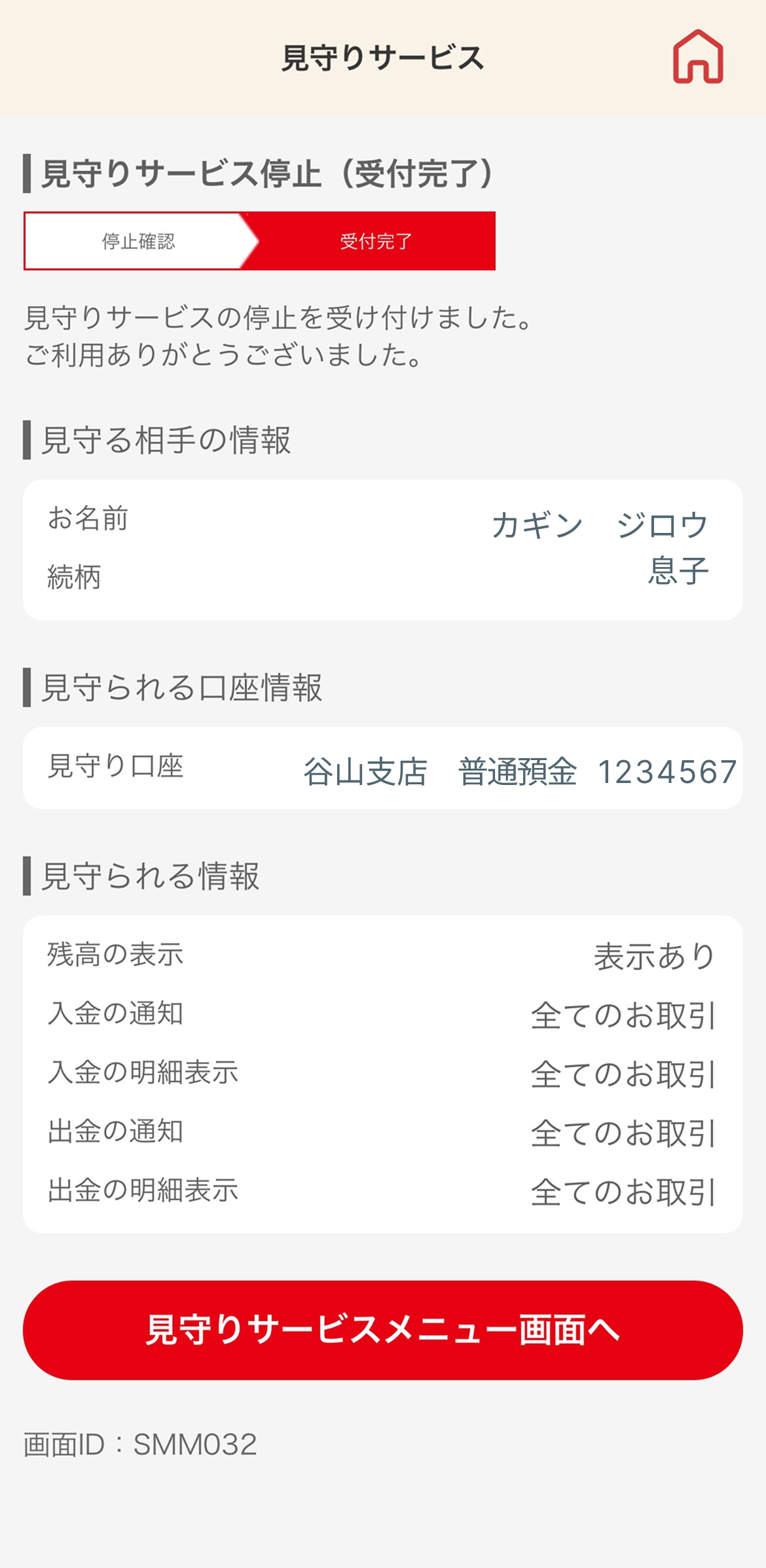 - 口座番号(見守る方・見守られる方)