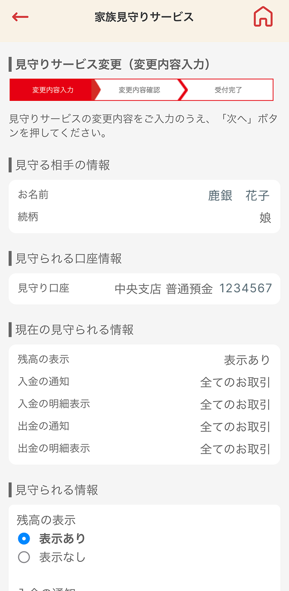 離れて暮らす子供の口座の確認や夫婦間で家計管理が行えるサービスです。
