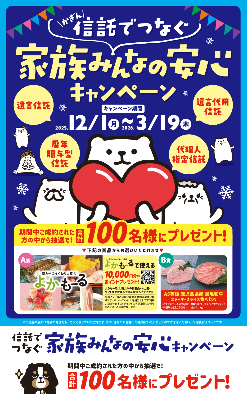 信託契約代理業 登録番号:九州財務局長(代信) 第5号 所属信託会社の商号:三菱UFJ信託銀行株式会社、三井住友信託銀行株式会社