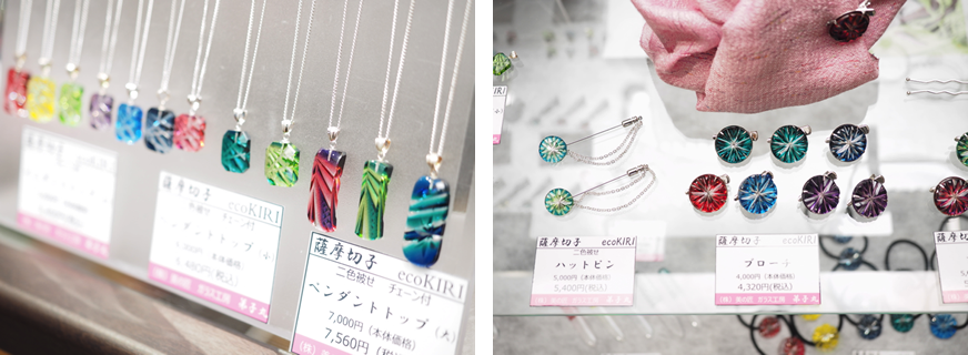そんな薩摩切子を、もっと気軽に手にして欲しいという想いから、『美の匠 ガラス工房 弟子丸』さんでは、薩摩切子の廃材となるガラス生地を再利用したエコな薩摩切子「ecoKIRI」を使用したアクセサリー作りをスタート。通常はグラスで20,000~30,000円はする薩摩切子ですが、「ecoKIRI」は廃材利用のため、お値段も4,000円~と大変リーズナブルです。そんなecoKIRIを使った制作体験は、幻の伝統に触れるまたとない貴重な機会。今回はレポーターのエリとミカのふたりが、薩摩切子アクセサリー作りに挑戦します!